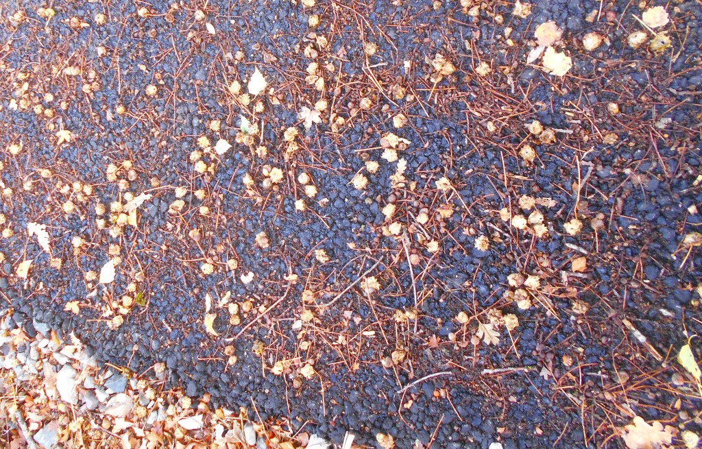 At the top of the hill the path is lined with mixed deciduous trees, among them some magnificent mature oaks and ash trees. They are not ancient, looking more in the 150 year age bracket but beautiful specimens nevertheless. One old penducalate oak, often called the English Oak, was a mass of wasp galls as the path beneath stood witness – scattered as it was with uncountable numbers of empty galls.