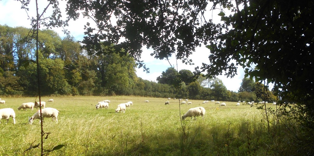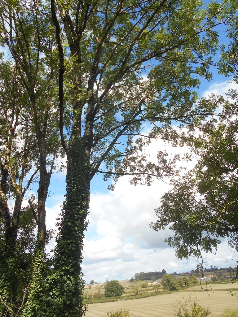 Cloudy, bright intervals – beautifully warm in the sun but the weather is certainly beginning to feel and look very autumnal as this photograph shows with the striped, newly harvested corn fields and the strong winds and sudden cloud bursts over the past few days. The glorious days of summer, hot sun, high temperatures, and two heat waves have disappeared as if they had never existed, so it’s a quick dash when there’s a break in the cloud and fingers crossed that we will not get caught in a downpour too far from home!