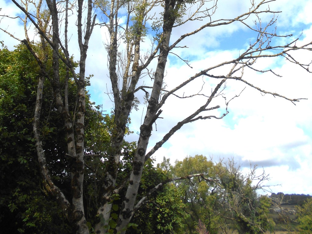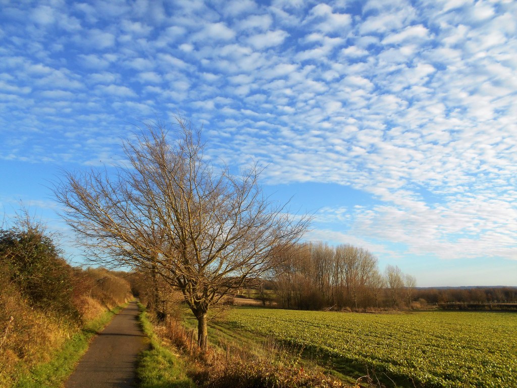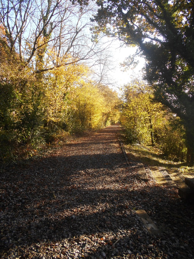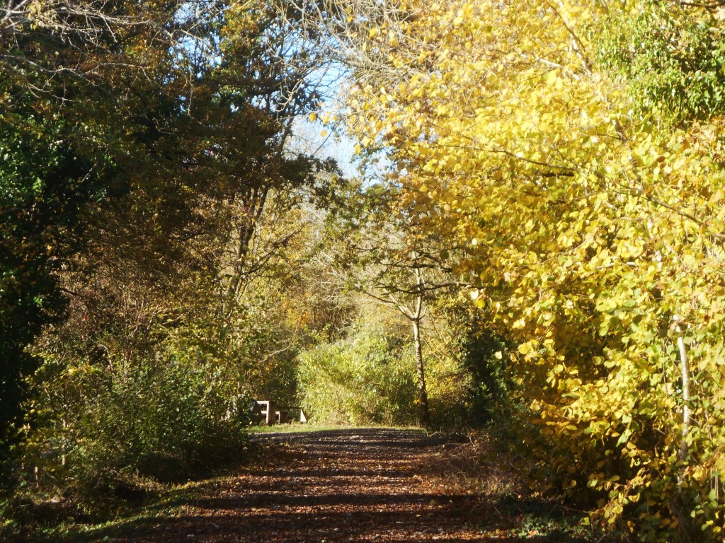 The silvery trunks and branches of a line of Ash trees made a striking sight in the bright, clear sunlight – such a welcome warmth on our backs which lifted our spirits – so wonderful to be out and about on these infrequent dry days of late autumn and enjoy the peace and quiet, broken only by the occasional swish of a cyclist whizzing by.