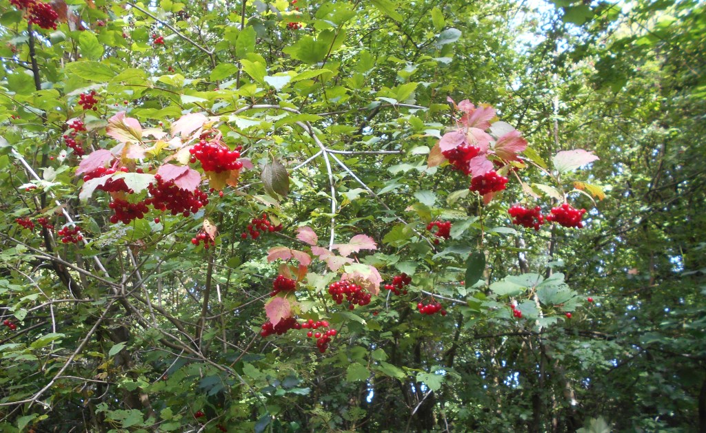 One of the most welcome sights of autumn, the brilliant scarlet berries of several Guelder Rose bushes were glowing in the sunshine along the hedgerow…
