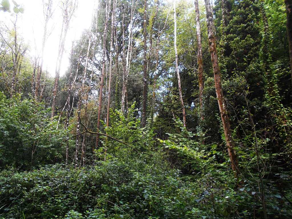 Not quite a temperate rain forest, but pretty close, while the cyclists fly down the tarmac traffic free and almost empty path, they miss the chance to explore the dense, almost impenetrable jungle, a tangle of fallen moss covered trees, ferns and thick clumps of bramble traps for the unwary, hence our name for this area…. Soggy Bottom Wood!