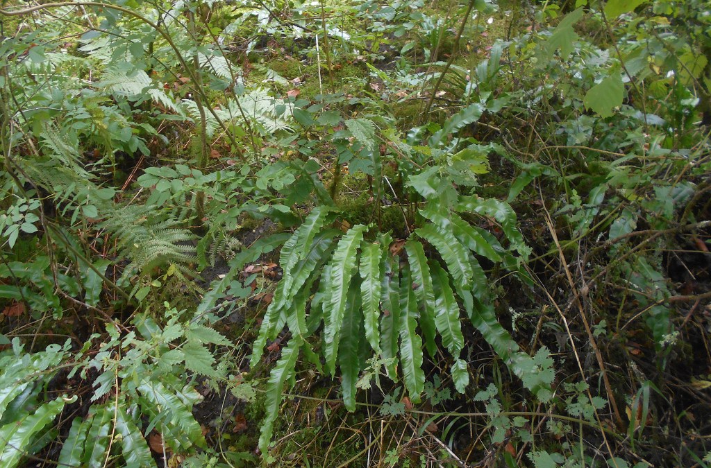 It is full of strange looking plants like Great Horsetail, Hart’s Tongue Fern, and trees wreathed in dark ivy, thick moss and lichen, with both their rotting stumps and their thick layers of dead leaves scattered with fungi.