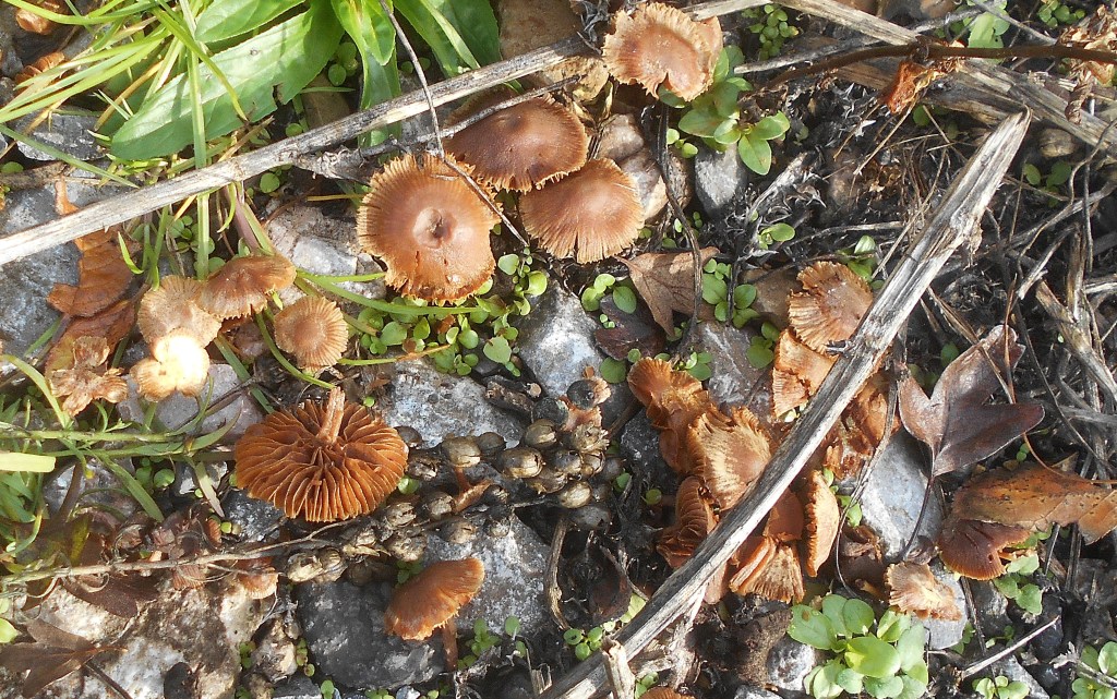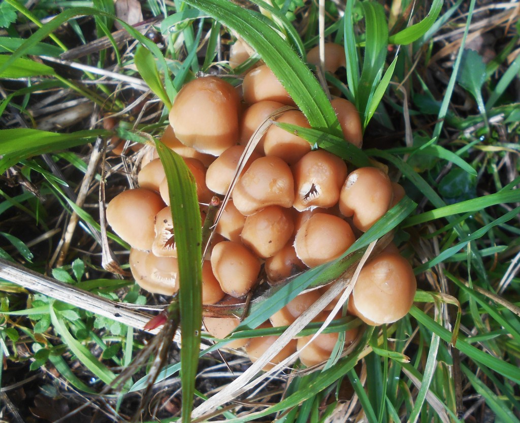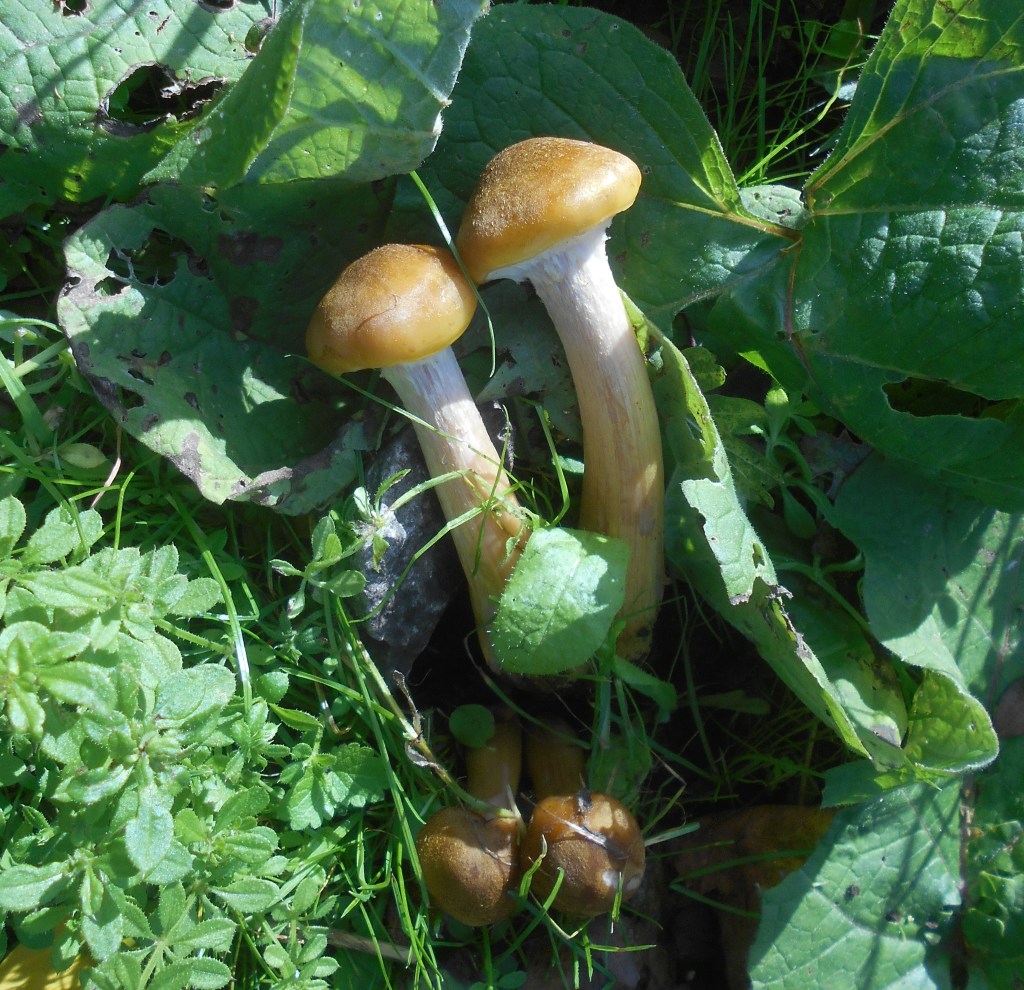 This species glowed in the bright sunshine, looking utterly delicious, like caramel toffee, delectably sweet and tempting to sample! They appear to be one of the many species of Honey Fungus, if so well named, they do resemble pools of dark honey!