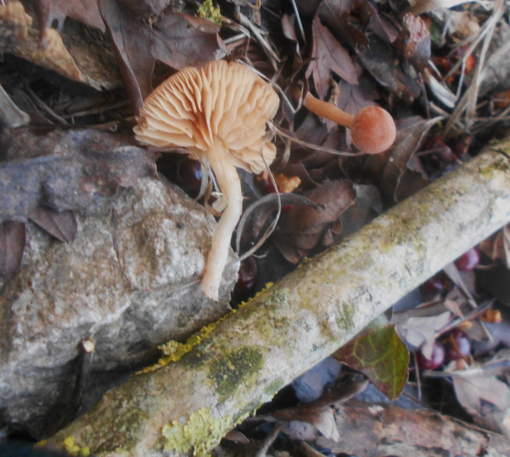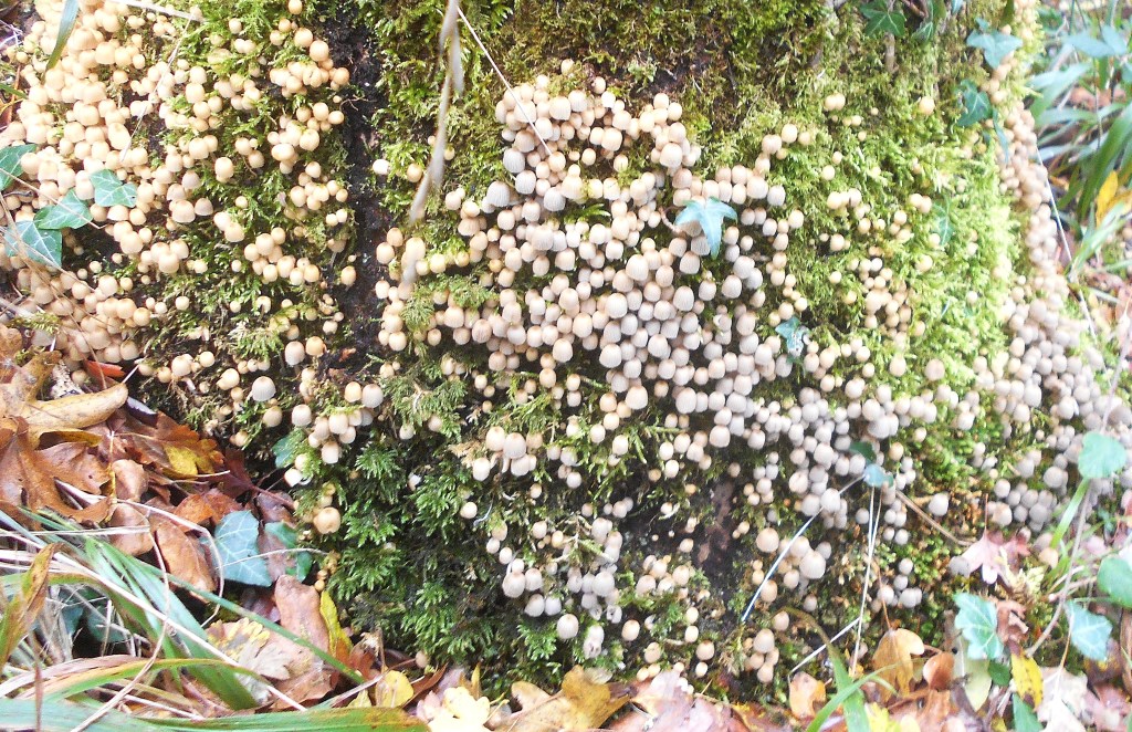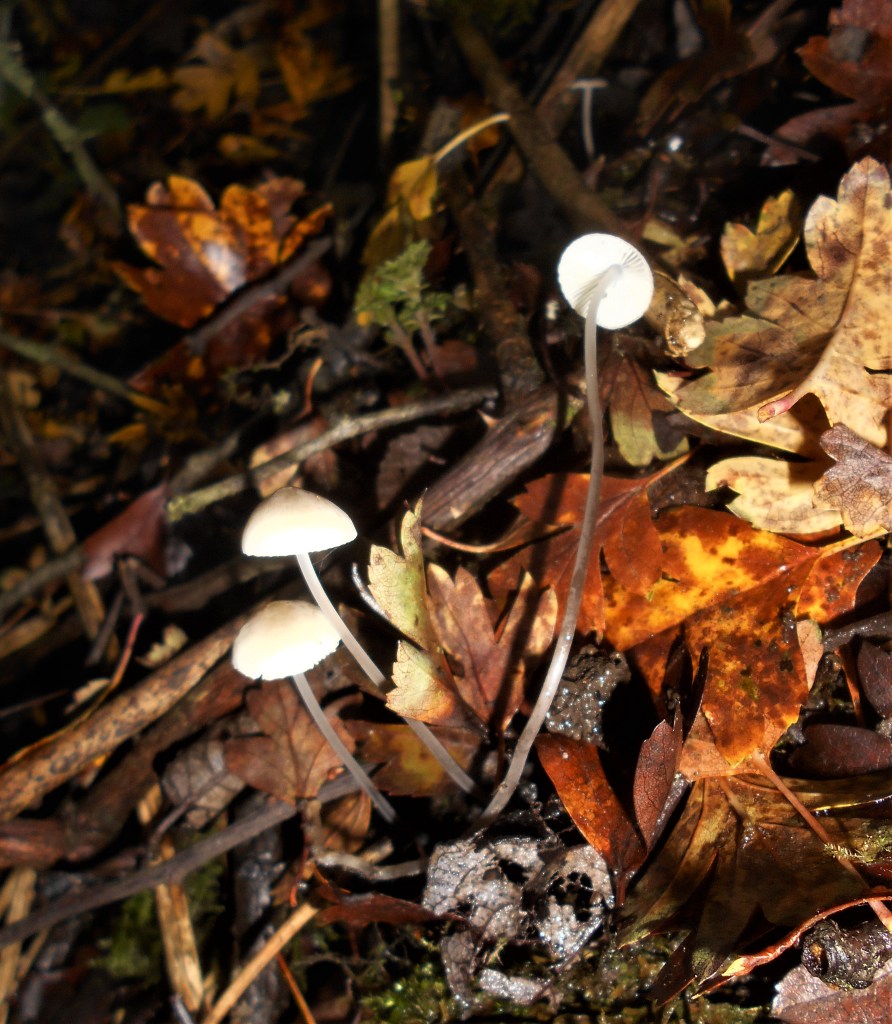Springing up through their mycelium, fungi can partner with the roots of plants, including trees, (probably hazel given the number of fallen cob nuts) creating a web of mycorrhizal networks.