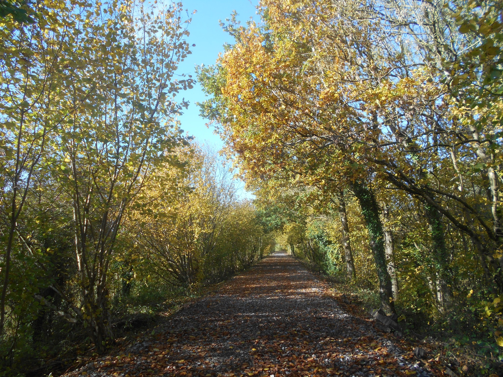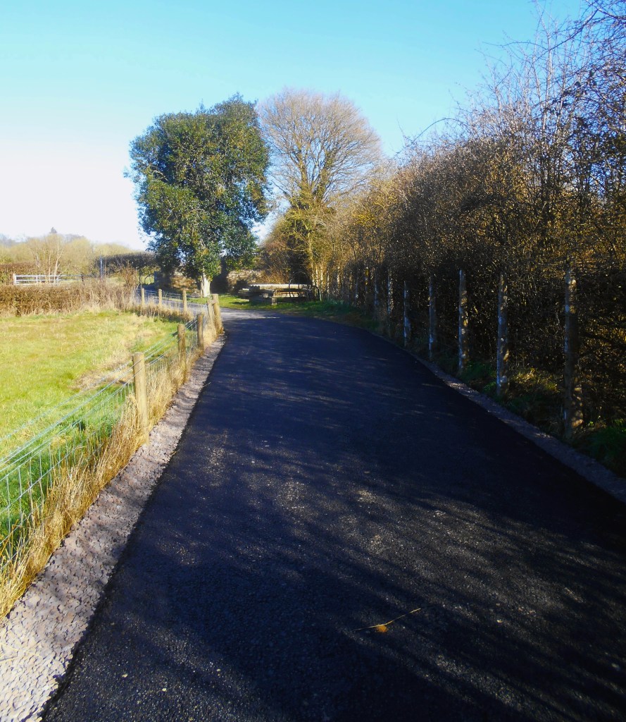 A favourite walk on the cycle path is the area which starts along the top of the cutting and descends down a very steep winding path to pass under the old farm track bridge, one of the many bridges built by the railway company when what was the line of a canal was converted into a railway line.