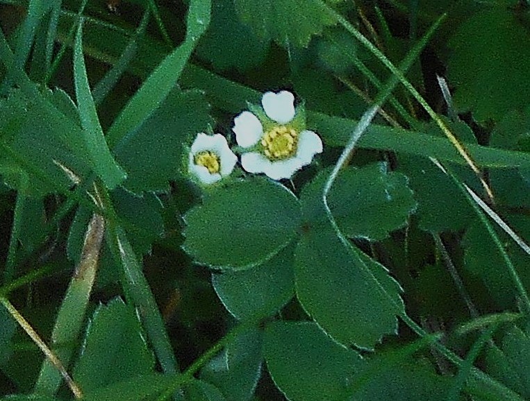 New plants beginning to shoot showing green leaves above the ground rose leaves bigger, more honeysuckle leaves.