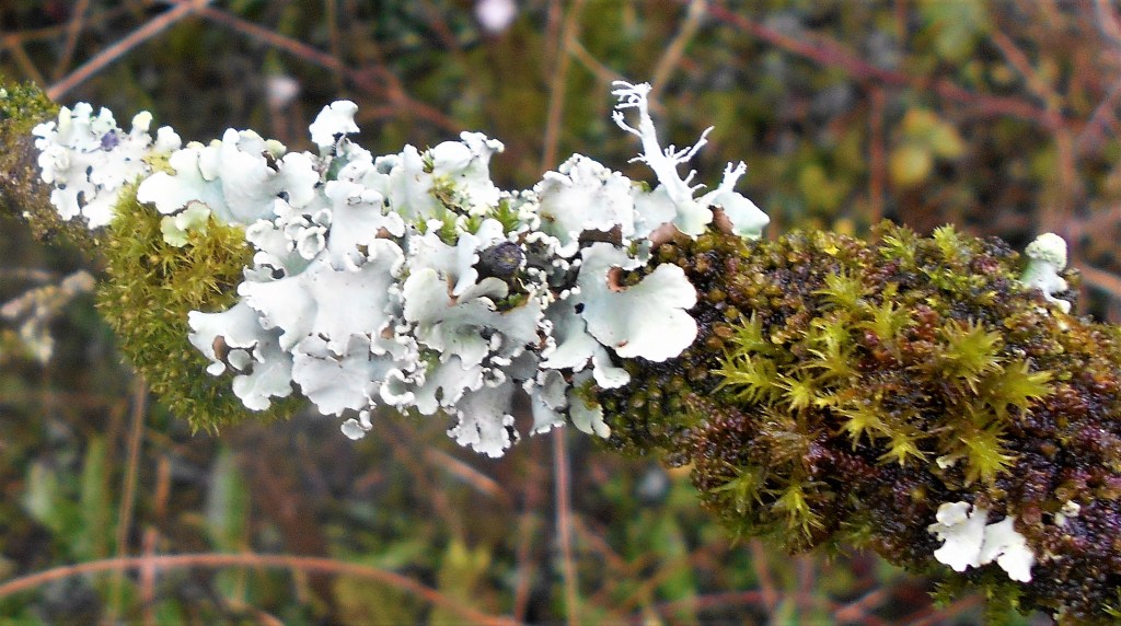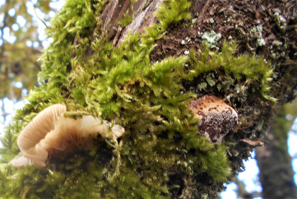 Fungi soon colonise the many moss covered branches which litter the ground, brought down possibly by the strong westerly winds prevalent in this area funnelling down the narrow cutting.