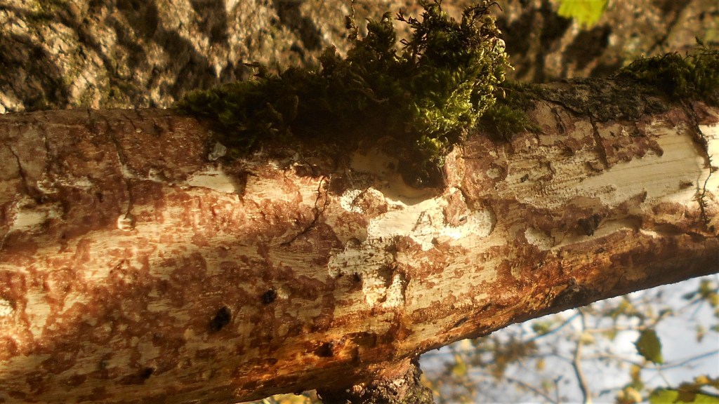 One of the trees seemed so distressed that its bark had seperated from the trunk – peaking underneath hoping to see insects, I was astonished to see a moth, perfectly still, and it made no move to fly away. It might have been a night moth which doesn’t fly during the day, but unfortunately we have been unable to identify it so far – a shame because it was highly decorative, particularly with its striped stockings!