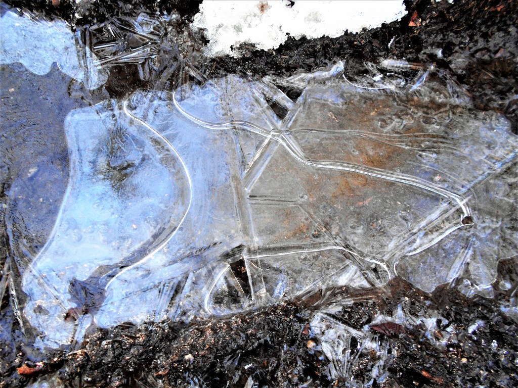 Redwings, blackbirds, robins, wood pigeons, flying amongst the branches as we walk along and a solitary song thrush sings loudly, repeating and repeating his phrases over and over.