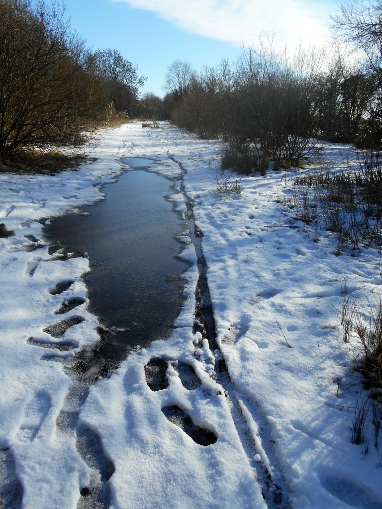 The delight of walking the cycle path created from a disused railway track is exploring the margins and discovering signs of animal and bird life which frequent the area.