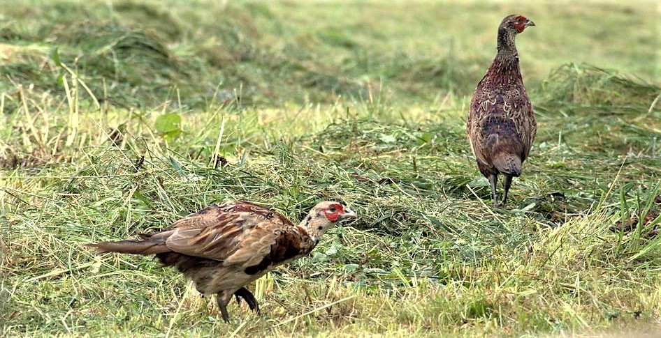 A brown hare in the rough pature among the pheasants on the edge of the wood. Lots of squirrels doing their usual aerobatics in the trees. Clouds of midges.