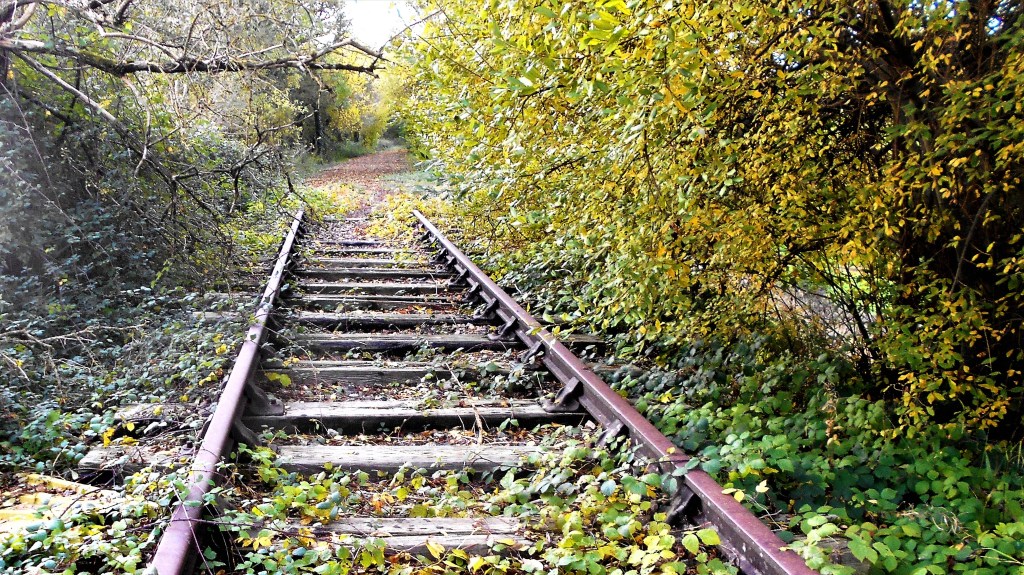 The path follows the disused old railway line whose rusty rails are sometimes visible beneath the overgrown plants and undergrowth, creating an area totally unlike any other part of Colliers Way.