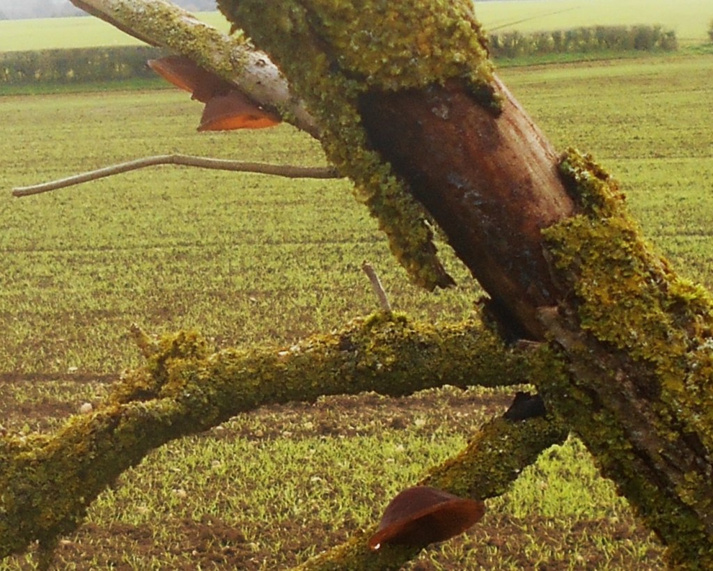 We left “honey fungus path” and walked on along the cycle path checking the hedgerows, adjoining fields where three bay horses were standing in the full blast of the wind, their pasture offering little shelter but a hedge lined in quite the wrong direction.