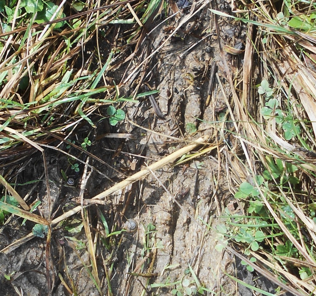 A carefully hidden Geocache waterproof box spotted, almost obscured by a thick clump of grass beside a track showing signs of people not just wildlife but although we examined the quirky contents of the box, we had nothng of interest to put in so we returned it to its hiding place without a swap.
