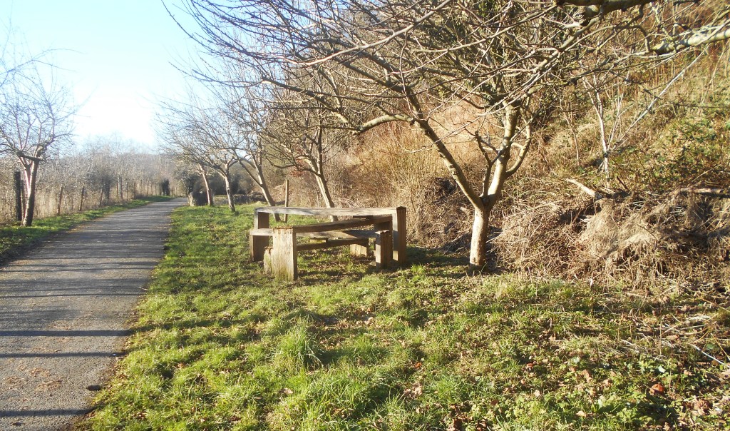 We began the long haul back to the bridge and up the winding hill, taking a short rest at soggy bottom bench – one of the simple oak benches designed by a Japanese artist and installed at intervals along the path. We chatted to a very fit looking middle aged women who was cycling back from visiting her friend in Frome who told us of the extremely serious accident she had suffered coming off her bike on the hill.