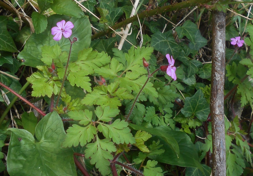 The strong wind was likely to have persuaded the small birds to stay sheltered among the thick leaf clusters although we could hear male Robins shouting at the tops of their voices, but we did spot two beautiful black Ravens flying over, croaking in greeting as they caught sight of us. We could hear although not see Jackdaws chattering, Crows pretending to be Ravens, Magpies, and of course Wood Pigeons but little else was venturing out.