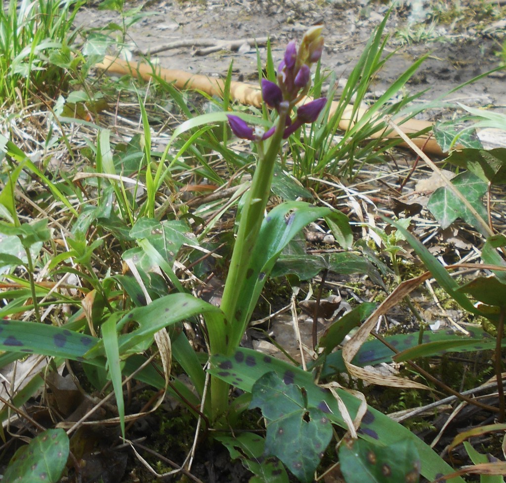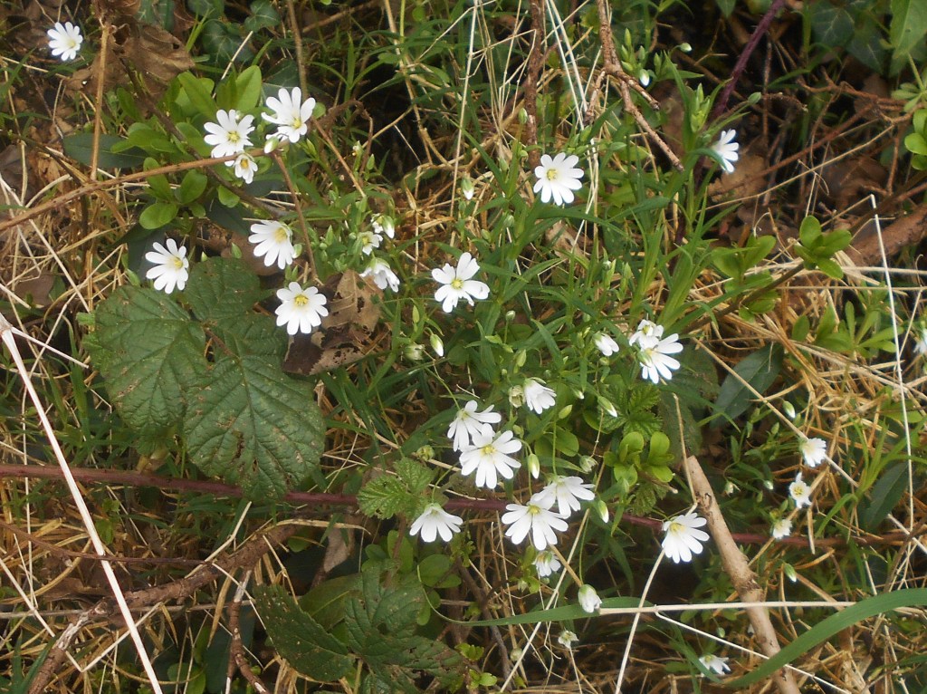 Dog’s mercury flower buds just beginning to show white. Nettles poking through.