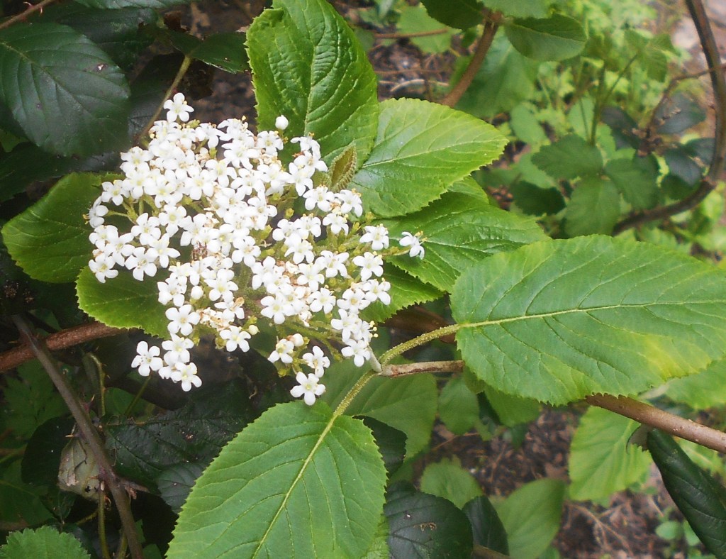 How refreshing to tramp “the short walk” up onto the top of the old railway embankment, past steep, high slopes thick with tall Hemp Agrimony and Rosebay Willow Herb, Burdock with its huge leaves, nettles and thistles entangled with Woody Nightshade, fruiting brambles, large ferns and half hidden fungus. The path with its view over the pasture (no sign of the usual horses) was lined with Enchanters Nightshade and the whole area alive with bees, hoverflies and butterflies, rises up to the trees towering along the top of the embankment – a mixture of Ash, Field Maple, Hawthorn, Hazel and Rowan saplings.