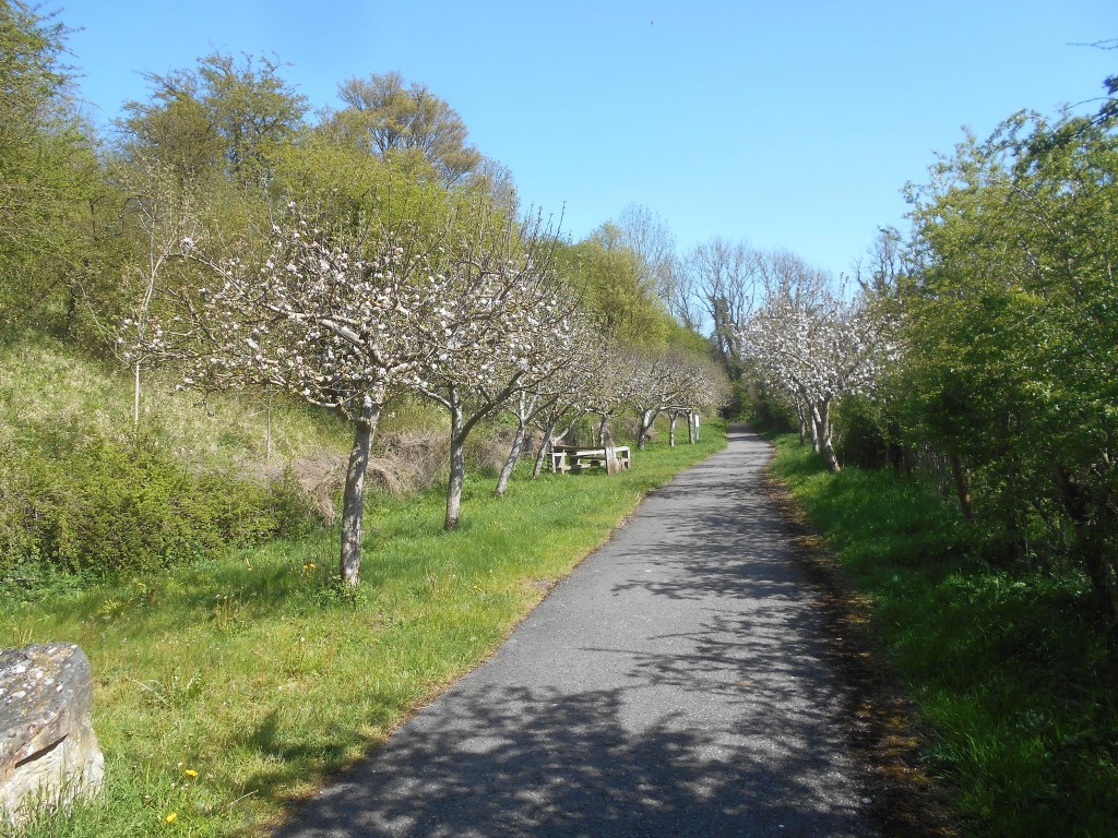 With the help of two stout metal walking sticks my husband made his first venture out since breaking his hip some two months ago and the cycle path could have been built for the purpose. The smooth, tarmac covered path made the perfect surface and the few dog walkers and occasional cyclist easy to maneouvre between and although sloping, easy to walk along.