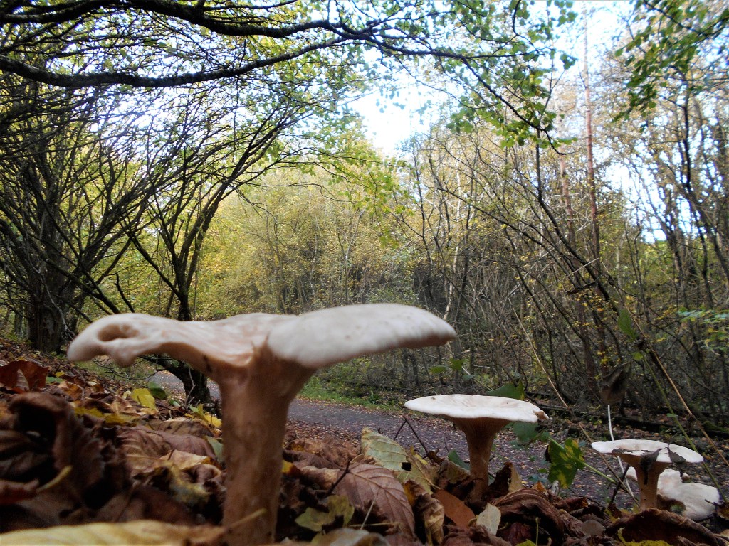 Springing up through their mycelium, fungi can partner with the roots of plants, including trees, (probably hazel given the number of fallen cob nuts) creating a web of mycorrhizal networks.