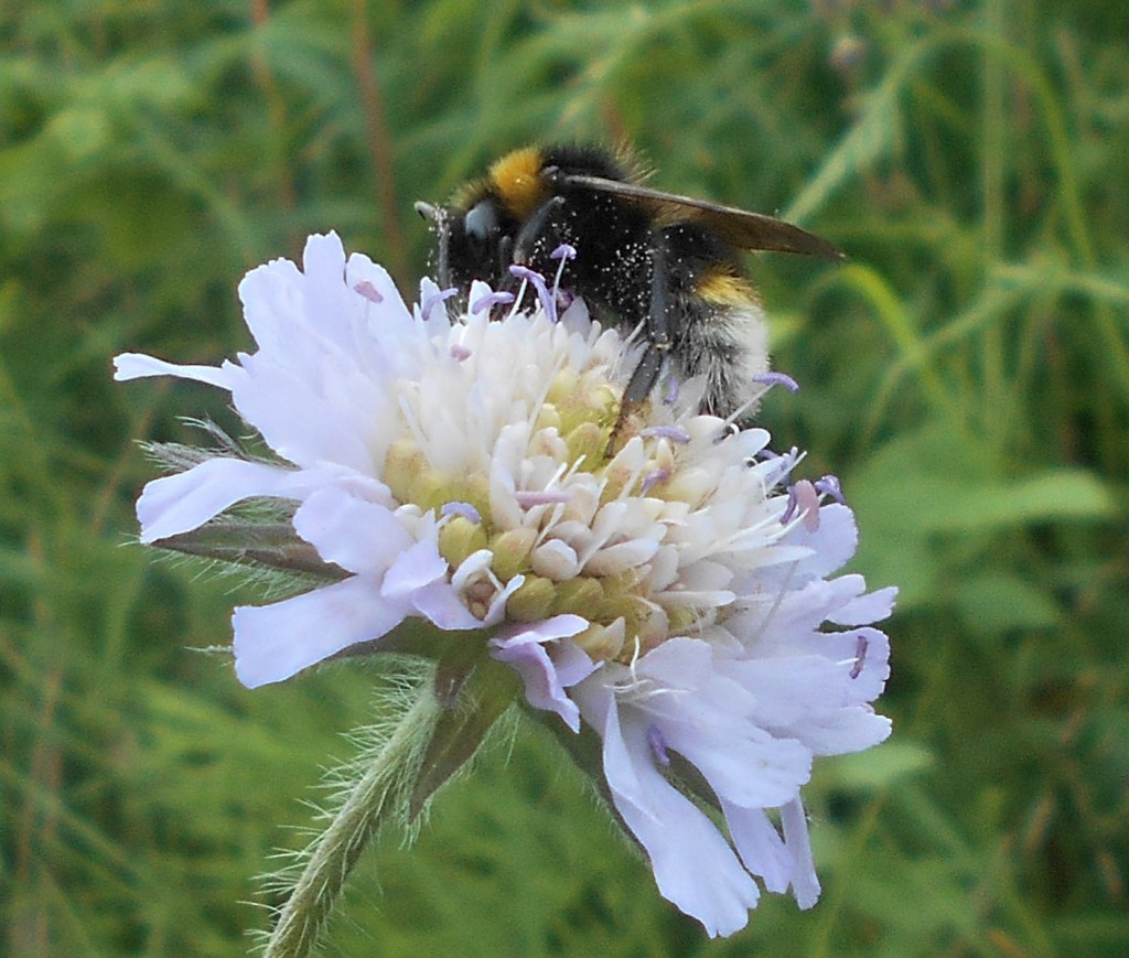 The top of the hill is chalk downland where the Woolly Thistles are most abundant – a magnet for bees, they are just beginning to open and make such a striking sight.