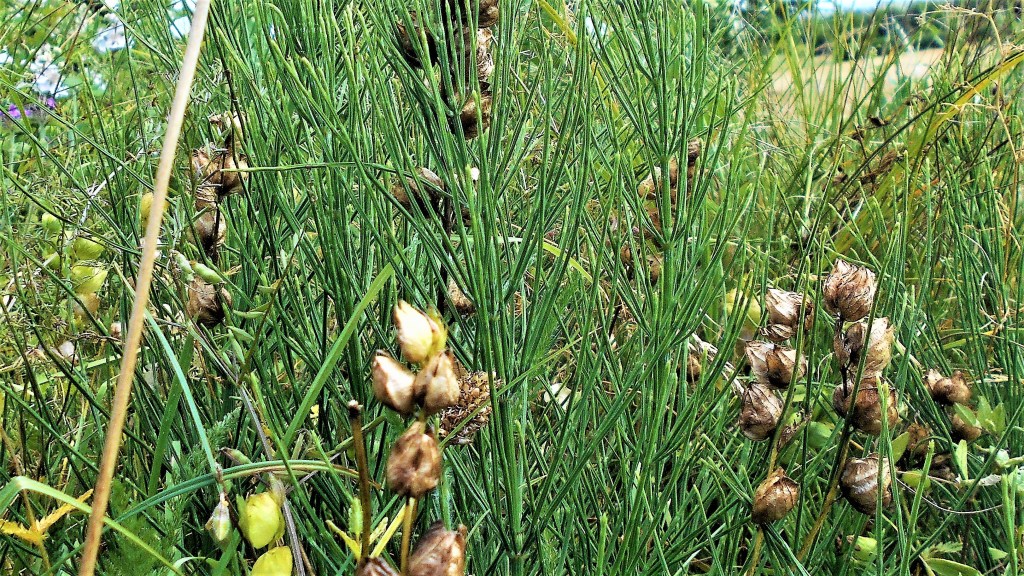 At this time of the year, the Great Horsetail has grown tall, whorls of wire-like green leaves surround the main stems (nearly white) the leaves grow much longer, and the “eyelashes” on the stems have become very noticeable. Horsetails are poisonous and many contain much the same toxins, such as Palustrine, but in differing proportions. Great Horsetail is more toxic than most, having higher concentrations of the toxins.