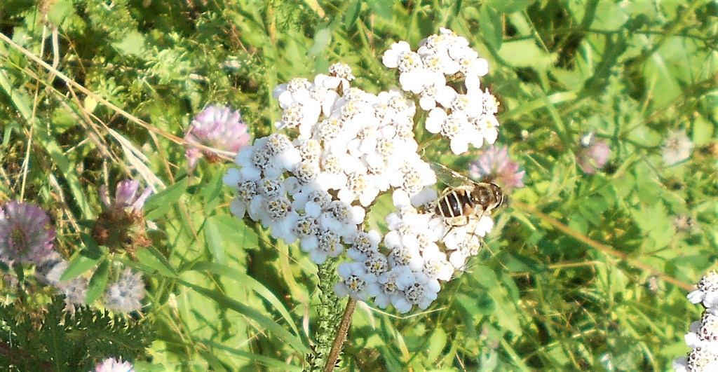 The budleia is still in full flower, as it has been all summer, still providing pollen for the many species of bees, butterflies and hoverflies feeding on them and they seemed untroubled by the very dry summer, unlike the grass and corn fields which have been bleached straw coloured for some time – making for a very concerning forecast of low yields for the local farmers.