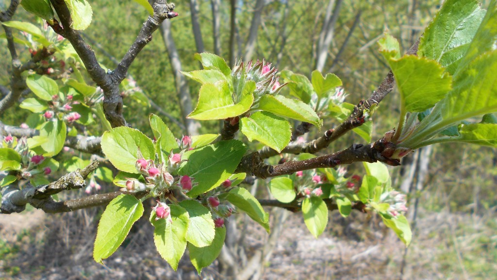Leaf buds fattening on the hazel trees, elder leaves out, tiny green leaves on some shrubs.