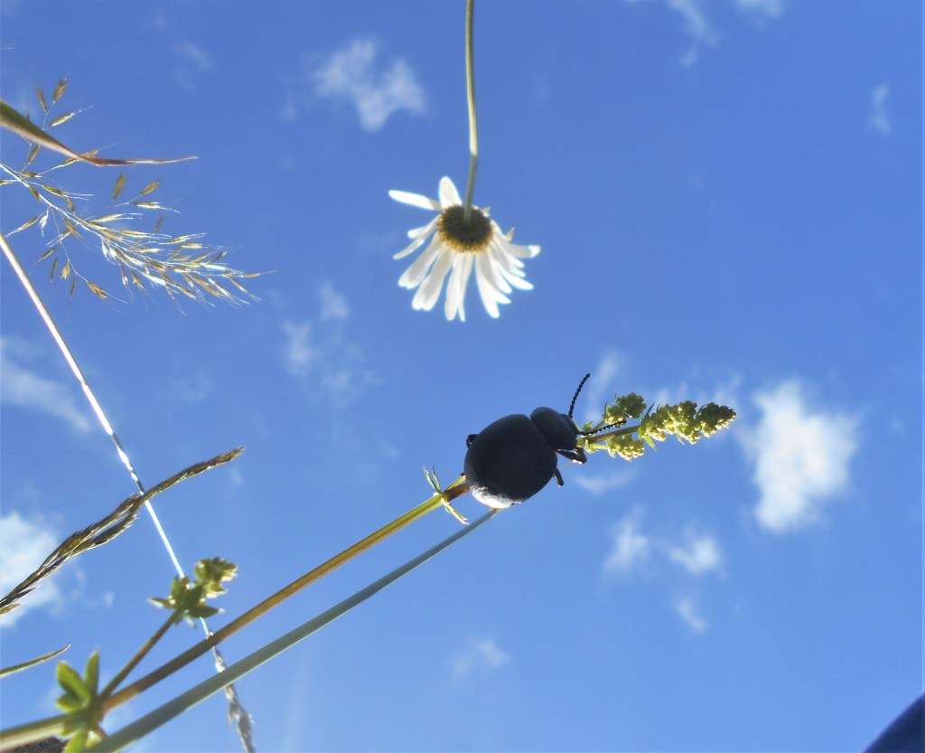 A shield bug landed on my husband’s knee, and stayed for a chat. It must have felt comfortable, basking in the brief burst of sunlight, for it stayed for some time, totally indifferent and undisturbed when we moved.