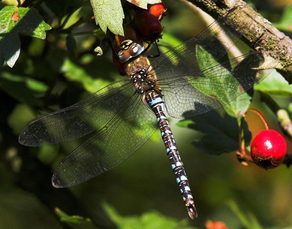 This is a very common dragonfly, breeding in all sorts of waterbodies from ponds and ditches, to rivers and lakes. These two dragonflies, coupled together in tandem whilst the female laid her eggs. The shallow puddle of water in the slight hollow formed by walkers using the path surely presented a danger of the puddle drying up but also a bigger danger of lack of food for the hatched larvae to feed on suggests this was a very unwise choice of habitat. Possibly the larger male which kept approaching and bothering the pair may have made them desperate.